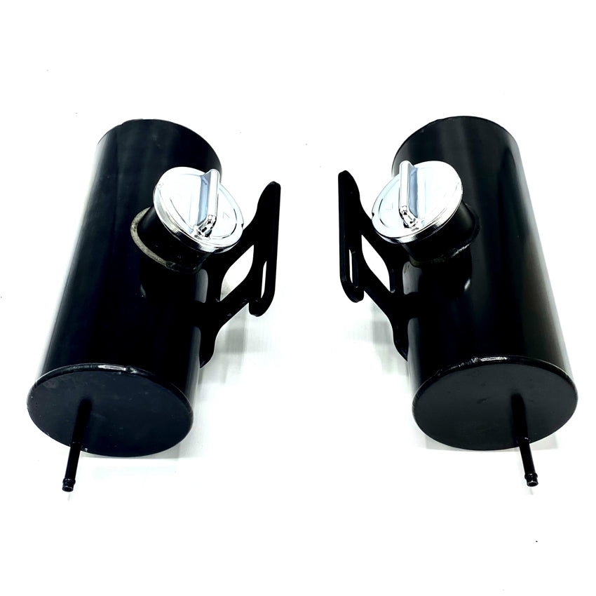 Set of two extra fuel tanks each with a capacity of 1 liter, designed for mounting on both sides of the frame. Ideal for extending the fuel range of your moped or motorcycle – especially when using small original tanks.