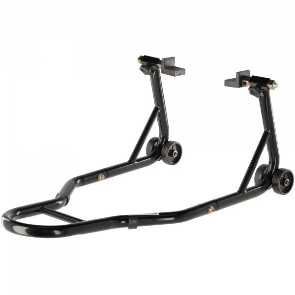 Ce support de stand robuste est idéal pour soulever de manière stable et sécurisée la roue arrière de votre moto. Parfait pour l'entretien, la lubrification de la chaîne, le changement de pneus ou le stationnement de votre moto sans béquille latérale.