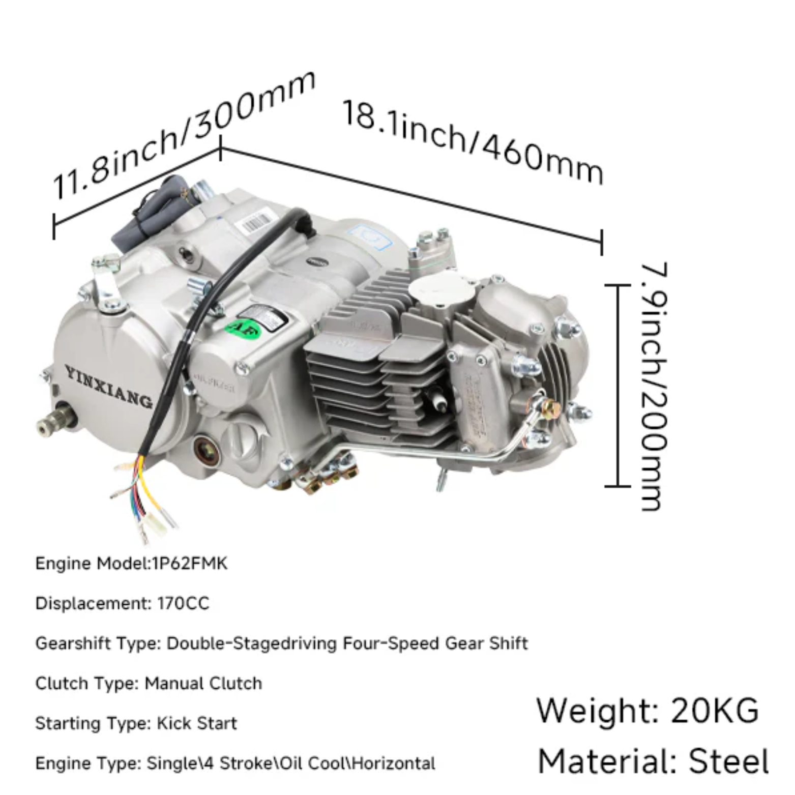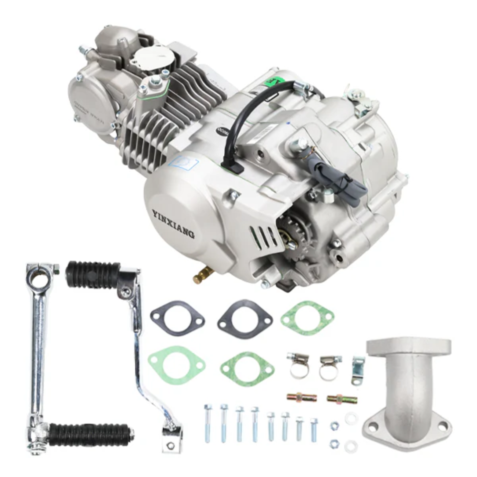 Ce moteur YX 170cc est équipé d'un système CDI haute performance 12V et d'une culasse type Superhead Takegawa. Le moteur est idéal pour les systèmes à 4 vitesses et offre d'excellentes performances pour une large gamme d'applications.